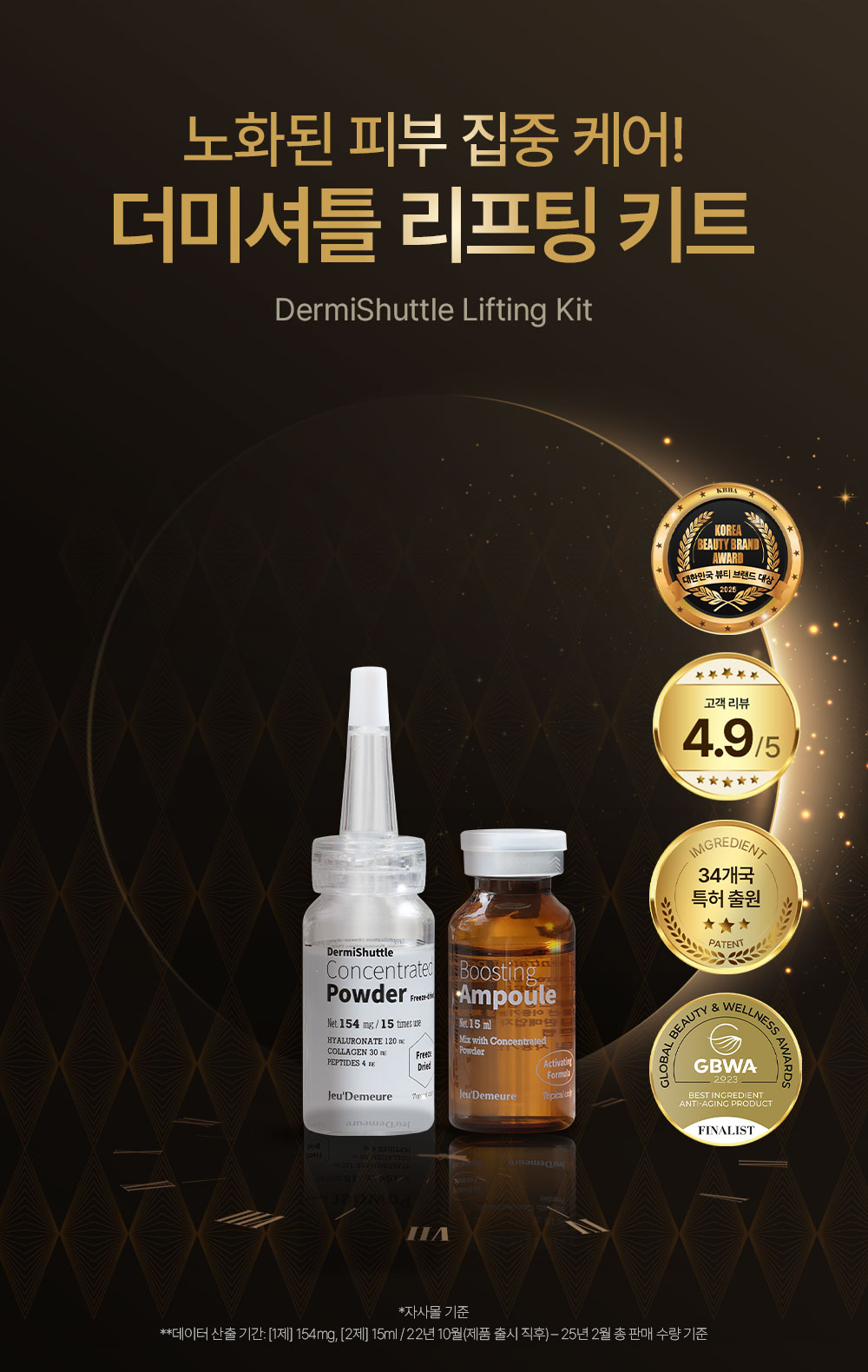 [용량 및 중량] | 동결건조 농축파우더(1제) 154mg *4 / 부스팅 앰플(2제) 15ml *4 |