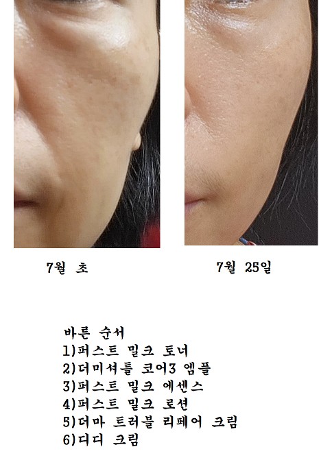 피부속에 모공이 줄면서 깊게 페인 주름이 펴지면서 피부톤이 밝아져서 좋다는 점.